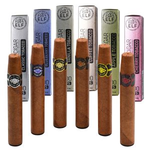 Elf Cigar Vape Disposable. 3,000 Puff – USB C rechargeable disposable vape cigar. Elegant design with authentic style leaf wrapper, soft mouthpiece with ash simulated LED tip.